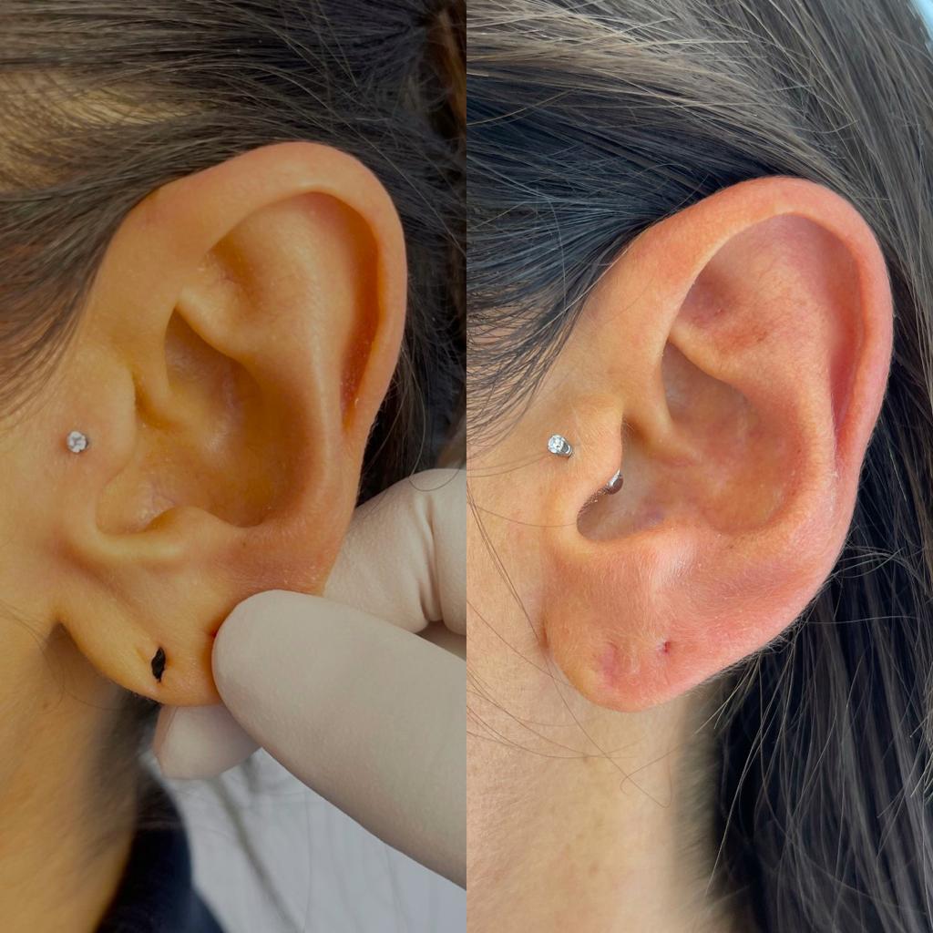 •Il lobo può essere ripierciato dopo circa 2–3 mesi, a seconda della guarigione.